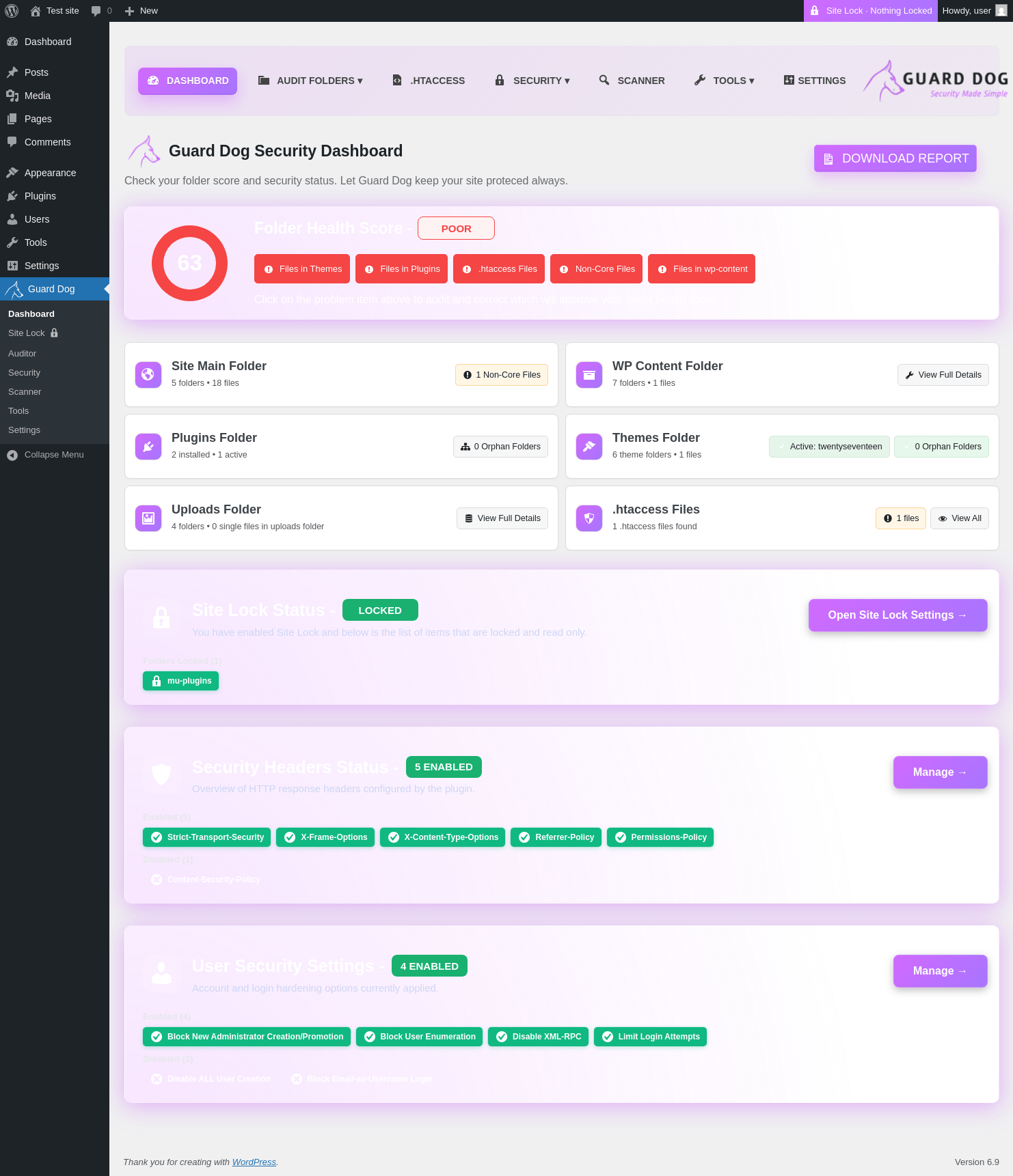 Does Guard Dog Security & Site Lock work with WordPress 6.9 and PHP 8.1.12? A smoke test was performed on .