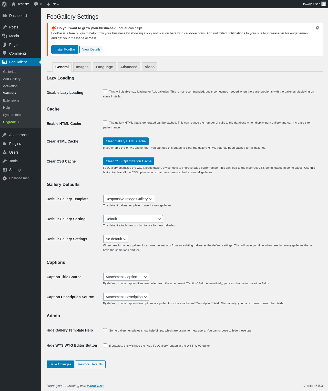 Does FooGallery work with WordPress 5.5.3 and PHP 7.4.8? A smoke test was performed on .