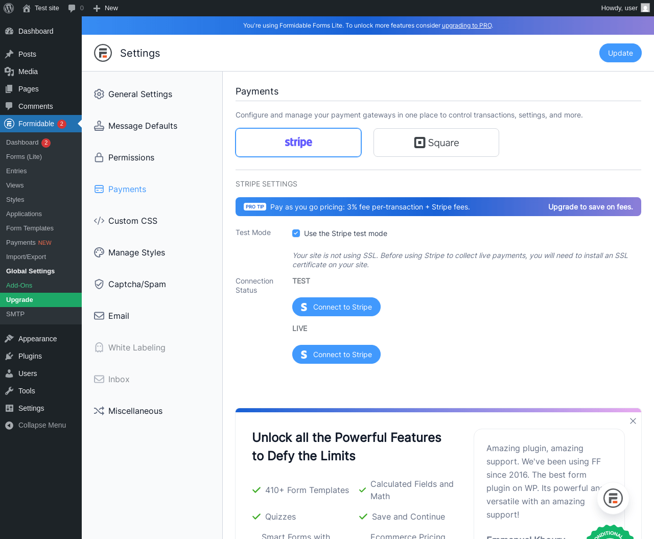 | URL | /wp-admin/admin.php?page=formidable-settings&t=stripe_settings |