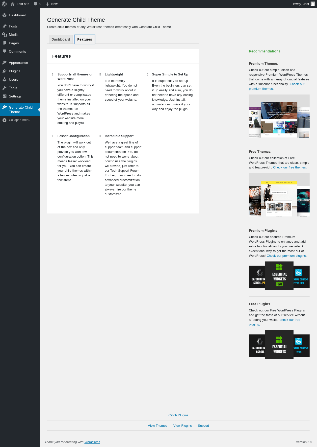 Does Generate Child Theme work with WordPress 5.5 and PHP 7.2.16? A smoke test was performed on .