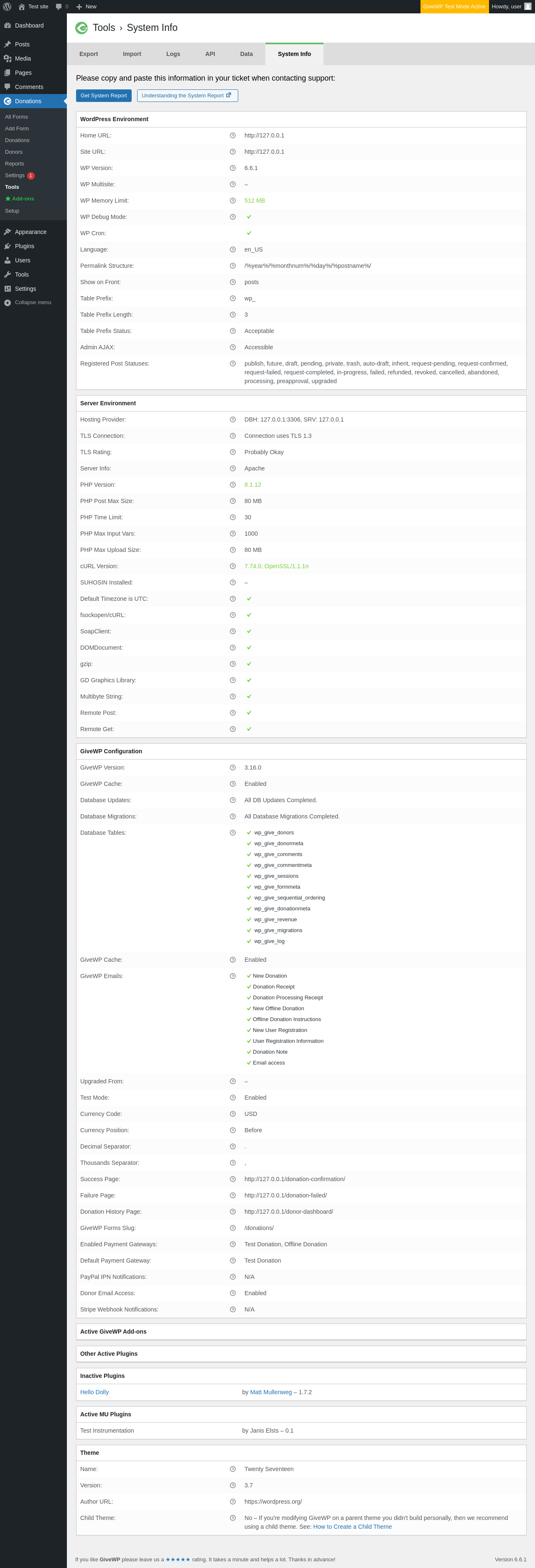 The test tool only looks for a few specific types of added content.
