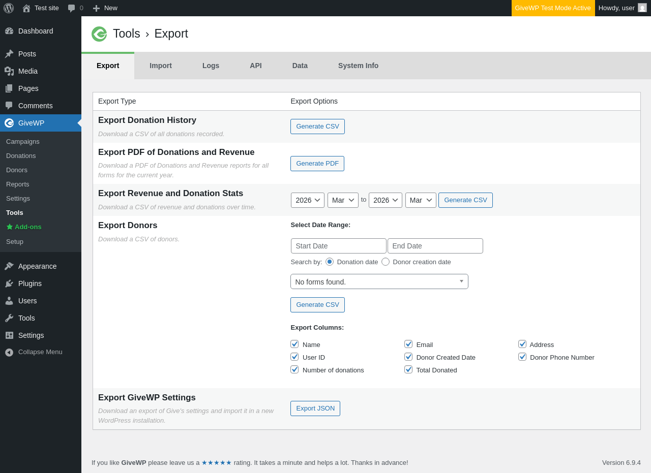 | URL | /wp-admin/edit.php?post_type=give_forms&page=give-tools&tab=data |