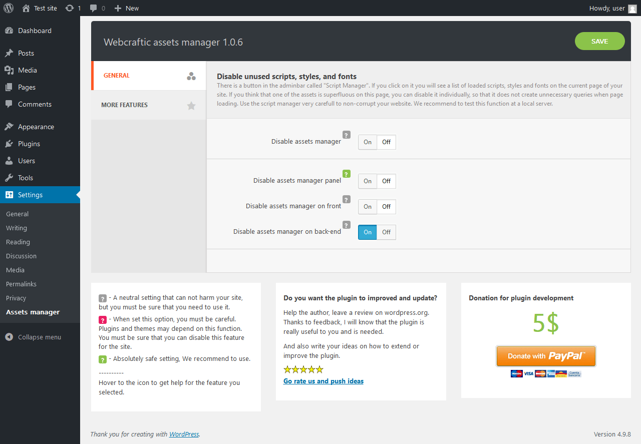 Does Webcraftic Assets manager work with WordPress 4.9.8 and PHP 7.0.16? A smoke test was performed on .