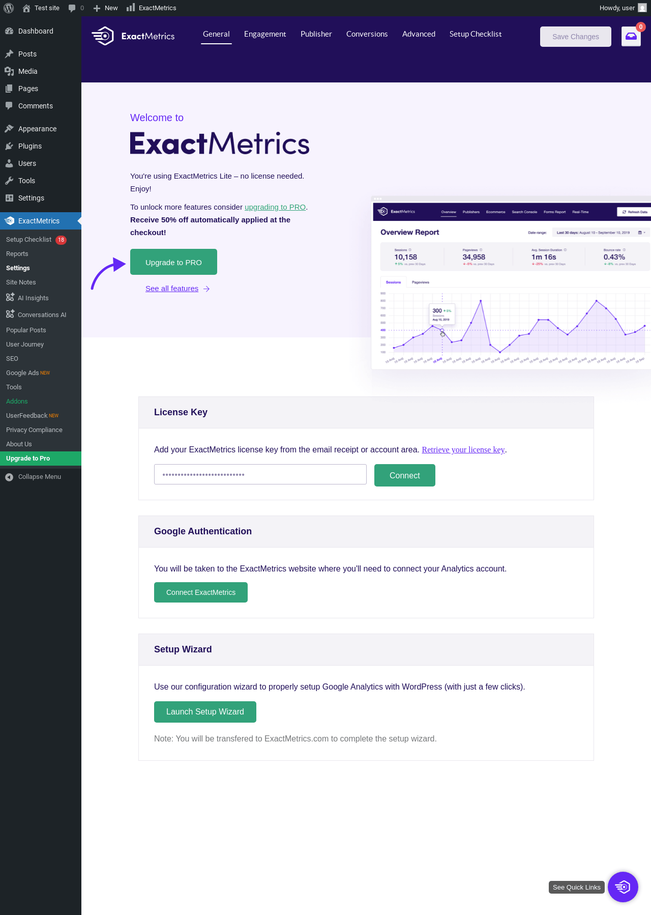 | URL | /wp-admin/admin.php?page=exactmetrics_overview_report#/ |