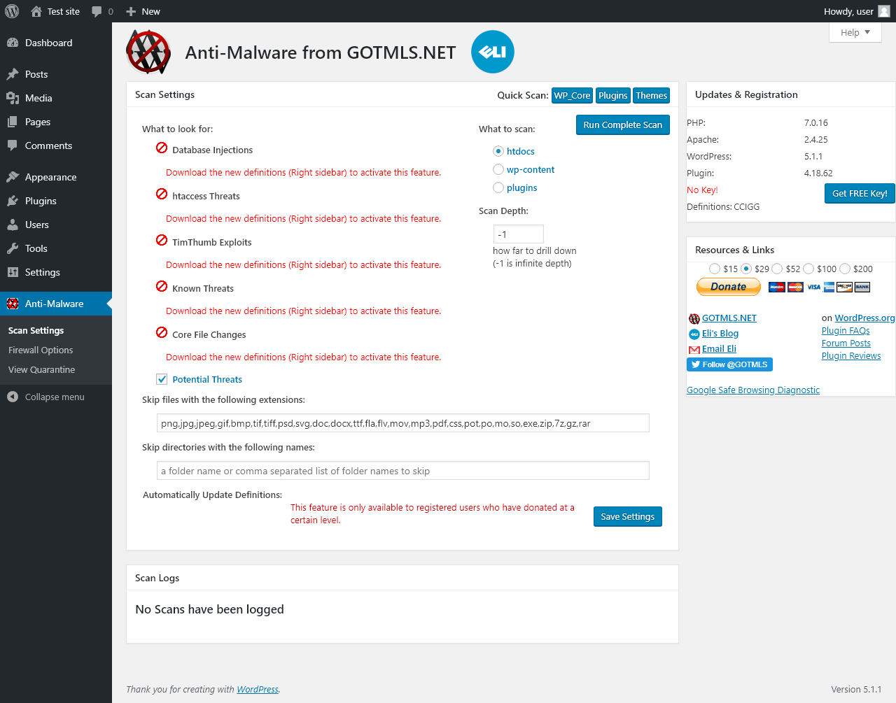 | URL | /wp-admin/admin.php?page=GOTMLS-settings |