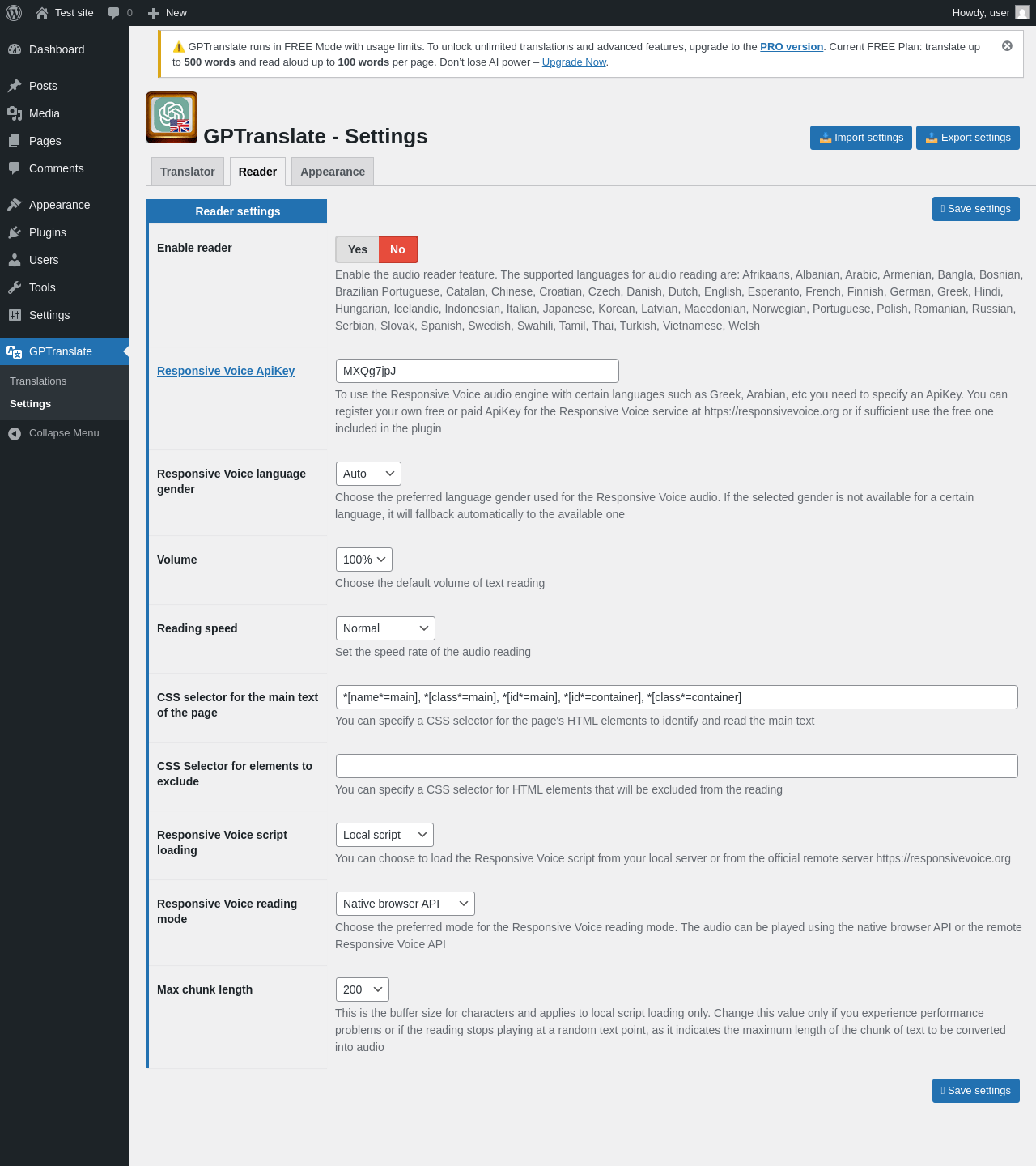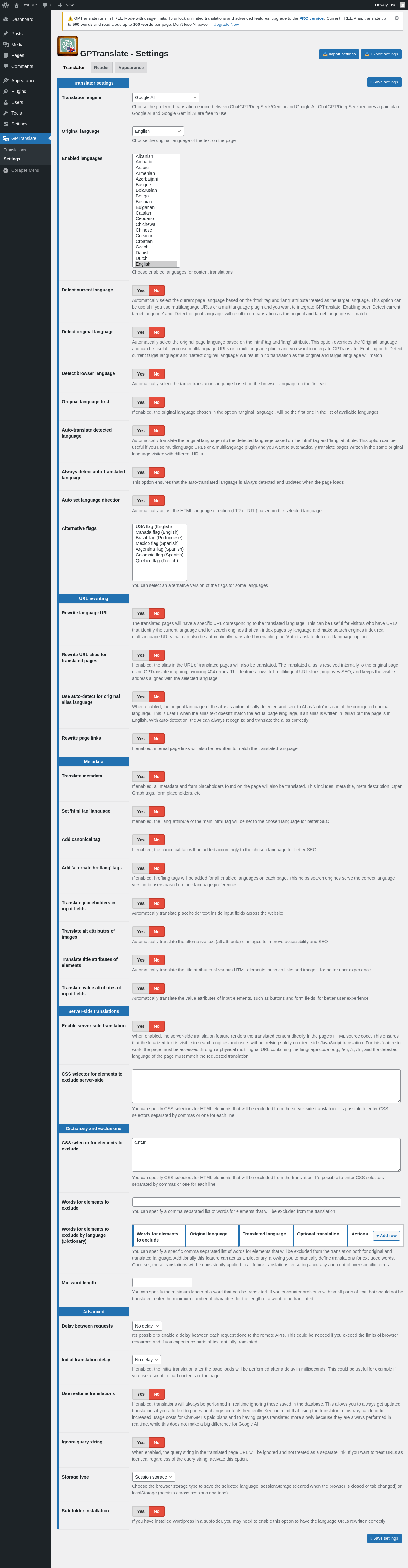 | URL | /wp-admin/admin.php?page=gptranslate-settings |