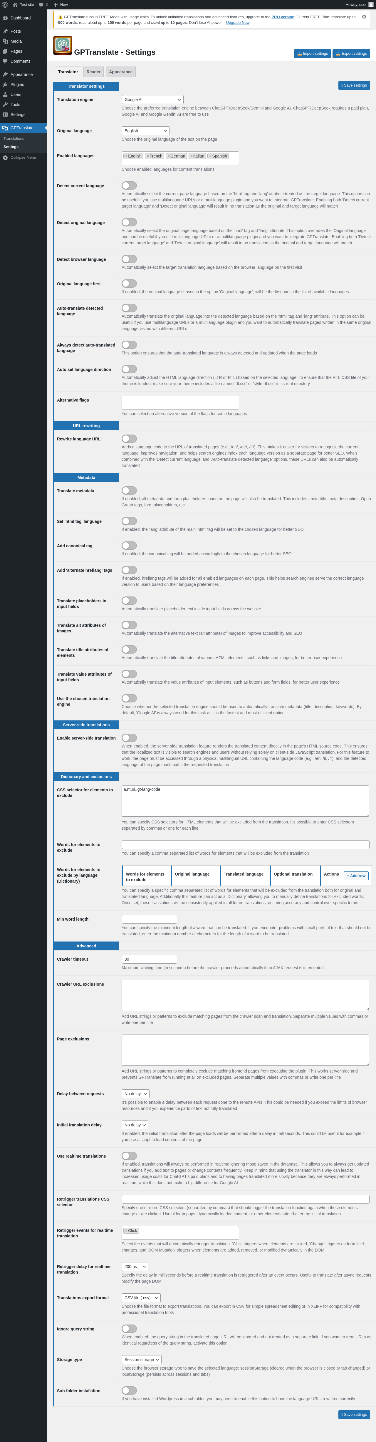 | URL | /wp-admin/admin.php?page=gptranslate-settings |