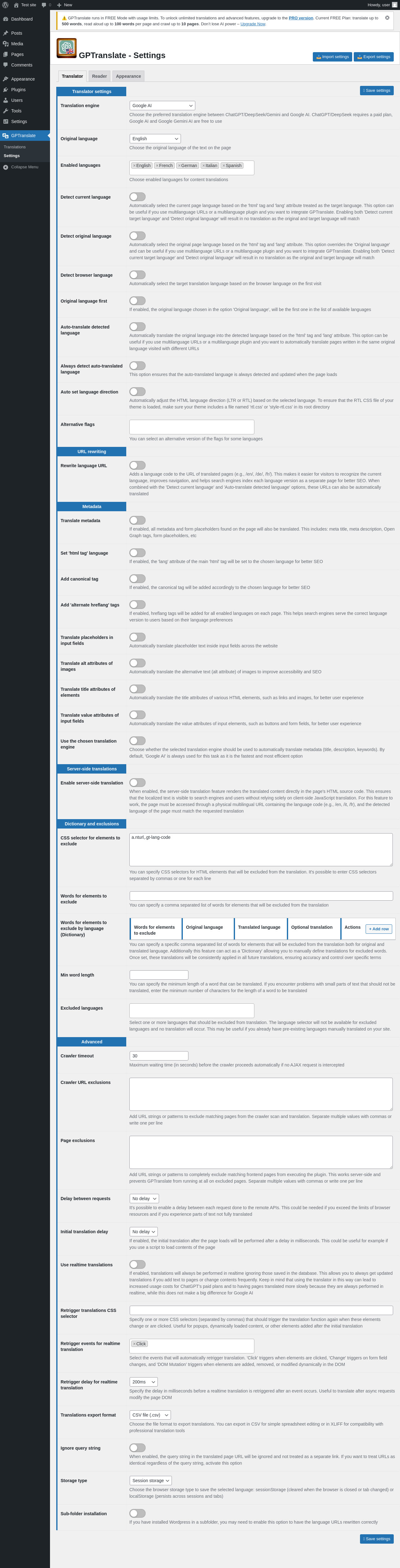 | URL | /wp-admin/admin.php?page=gptranslate-settings |