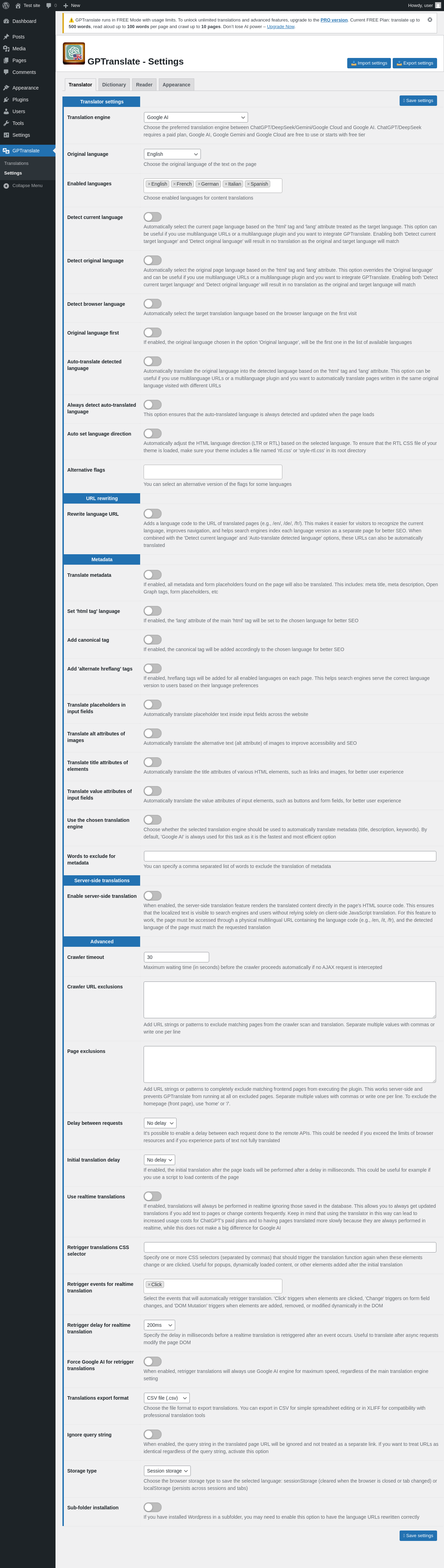 | URL | /wp-admin/admin.php?page=gptranslate-settings |