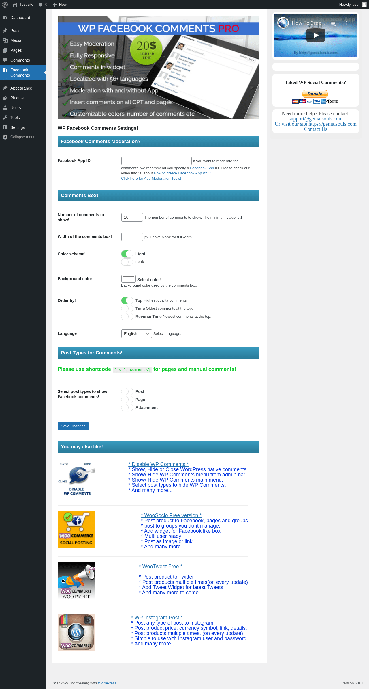 Does WP Facebook Comments work with WordPress 5.8.1 and PHP 7.4.8? A smoke test was performed on .