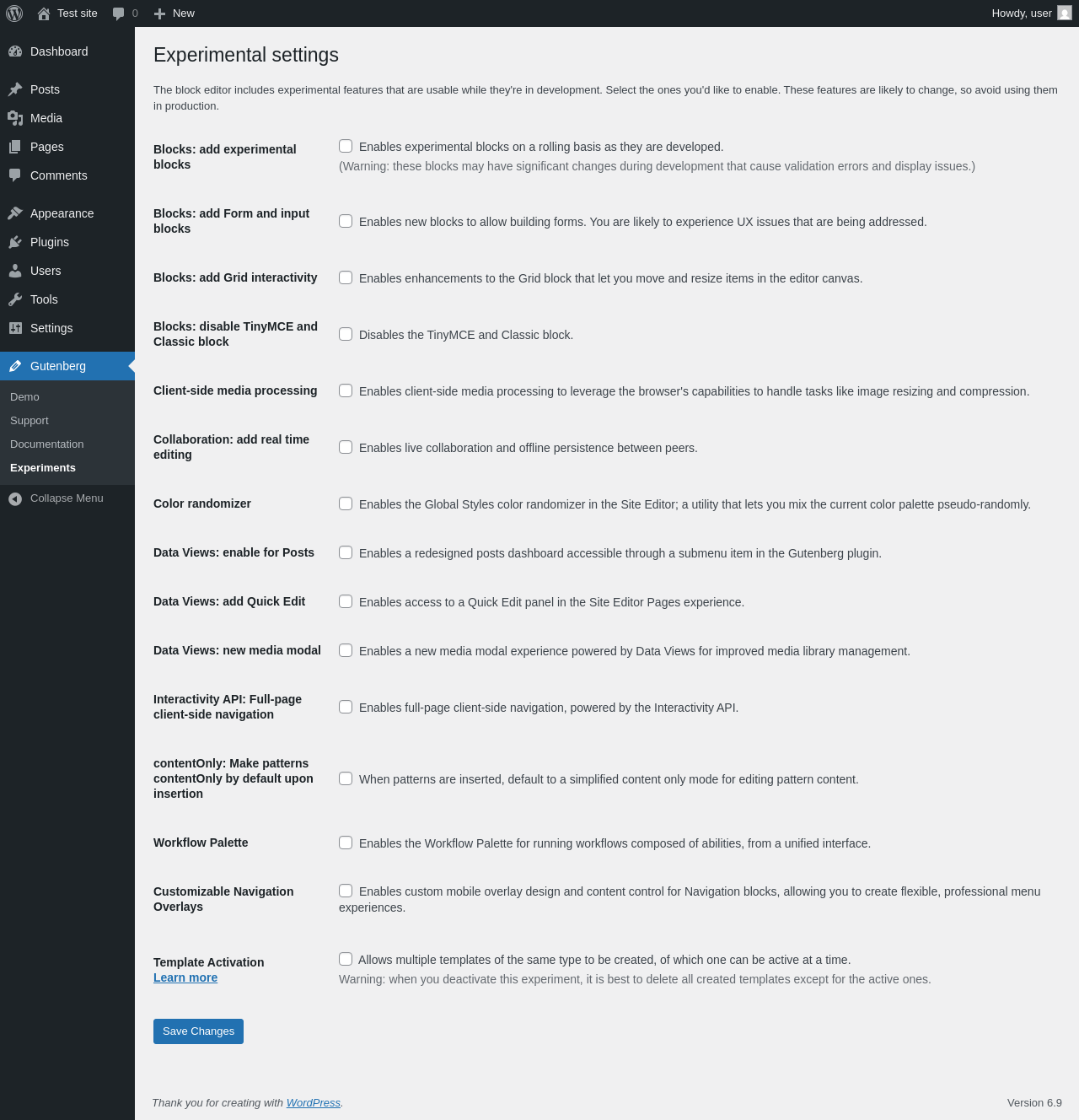 | URL | /wp-admin/admin.php?page=gutenberg-experiments |