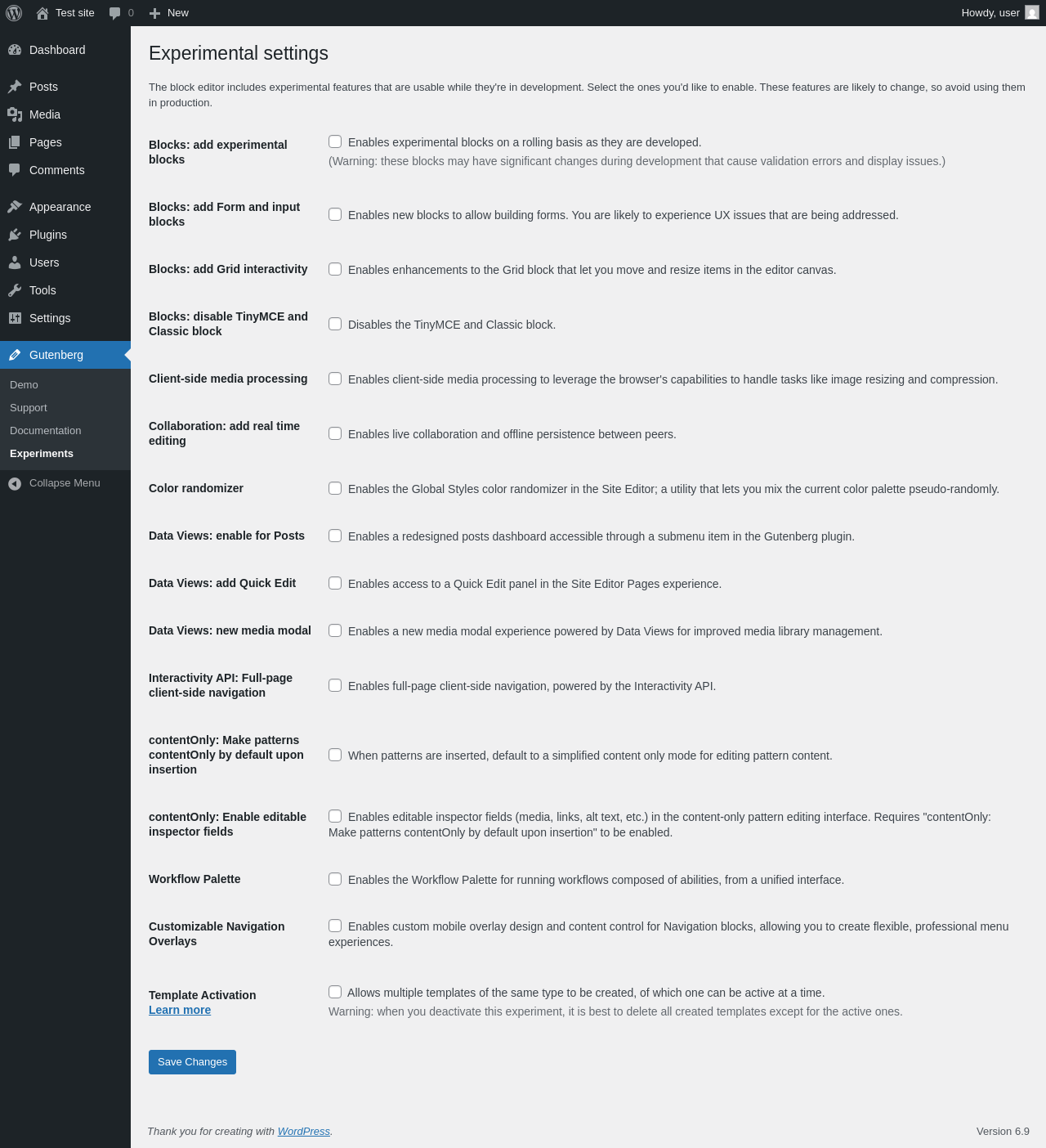 | URL | /wp-admin/admin.php?page=gutenberg-experiments |