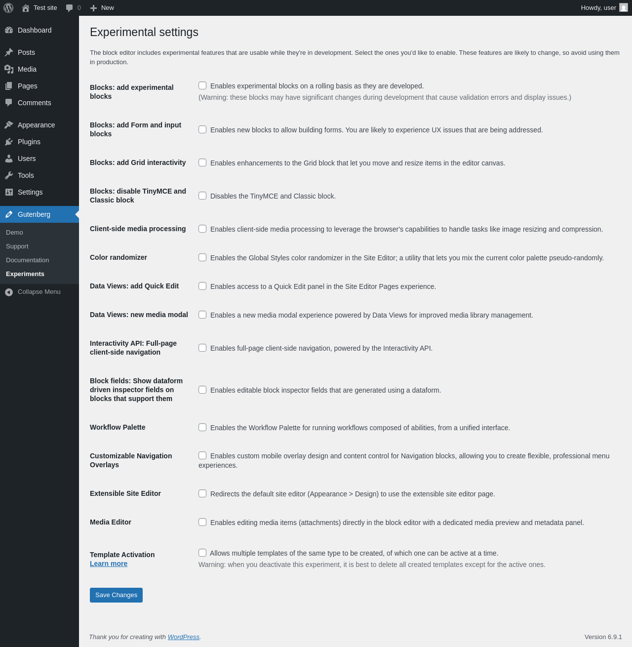 | URL | /wp-admin/admin.php?page=gutenberg-experiments |
