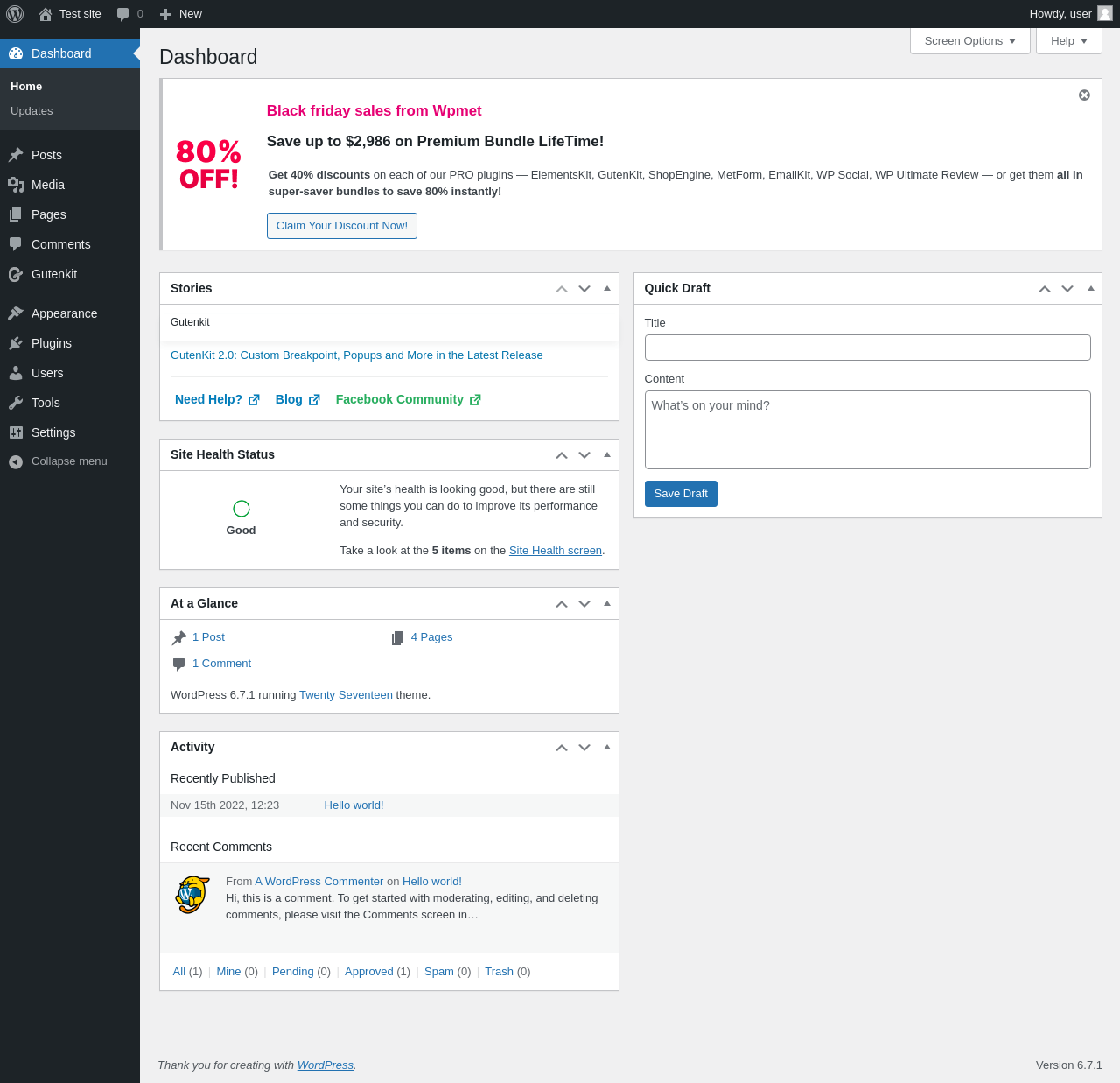 Does GutenKit Blocks work with WordPress 6.7.1 and PHP 8.1.12? A smoke test was performed on .