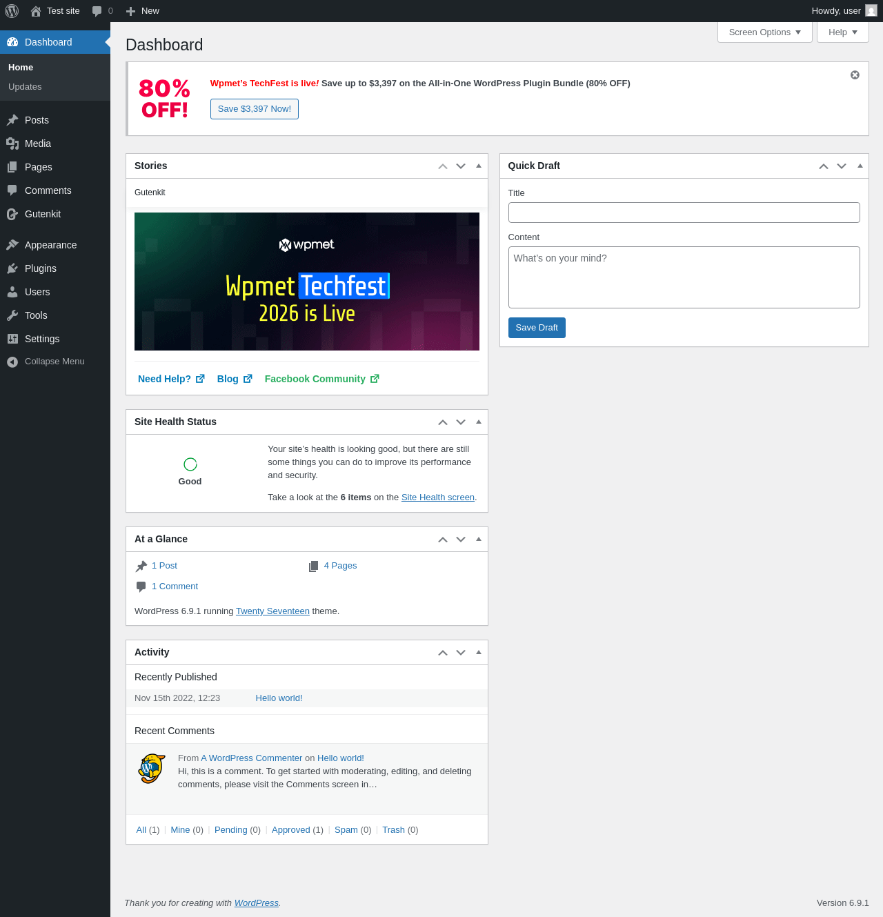 Does GutenKit Blocks work with WordPress 6.9.1 and PHP 8.1.12? A smoke test was performed on .