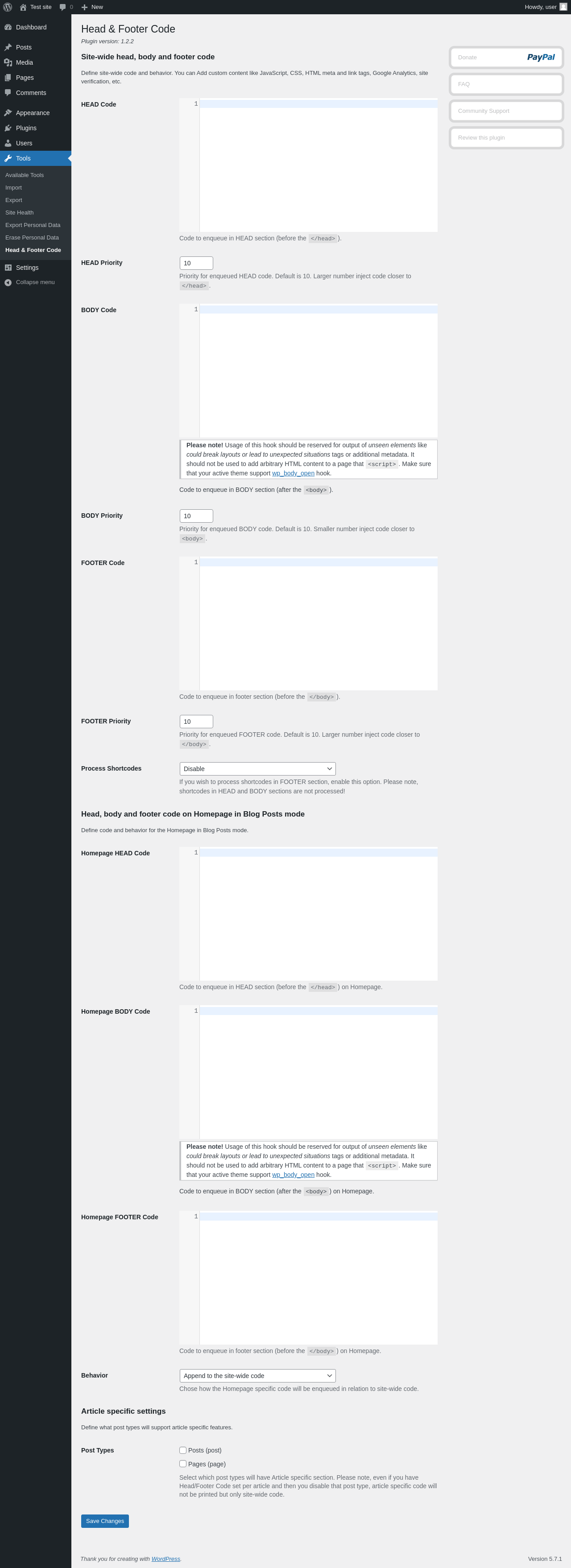 Does Head & Footer Code work with WordPress 5.7.1 and PHP 7.4.8? A smoke test was performed on .
