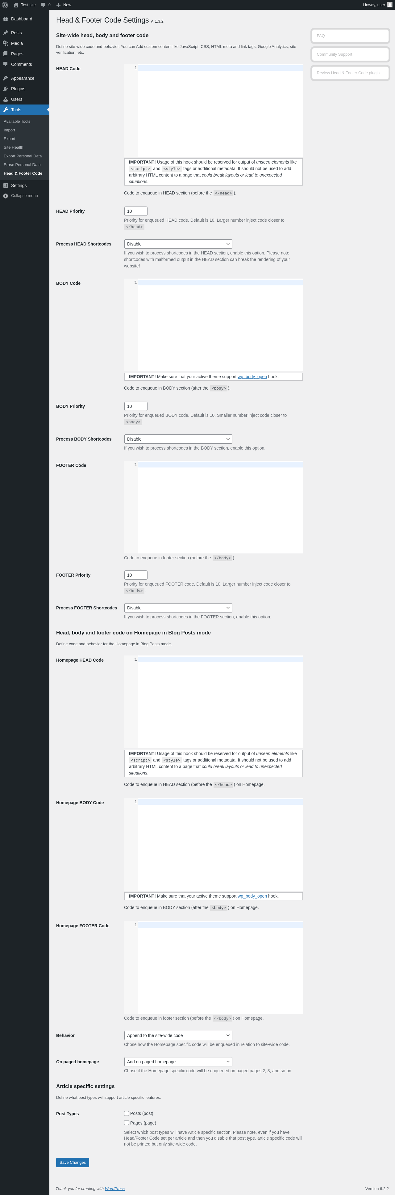 Does Head & Footer Code work with WordPress 6.2.2 and PHP 8.1.12? A smoke test was performed on .