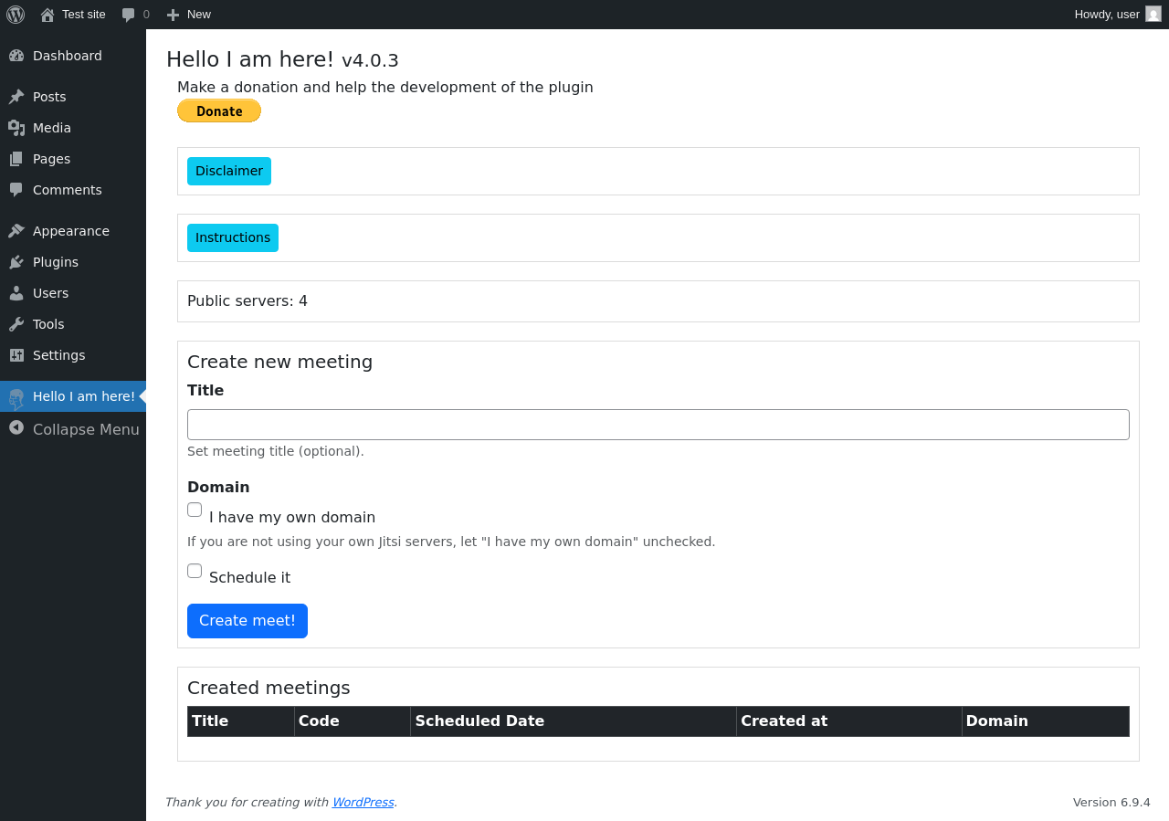 | WordPress.org page | https://wordpress.org/plugins/hello-i-am-here/ |