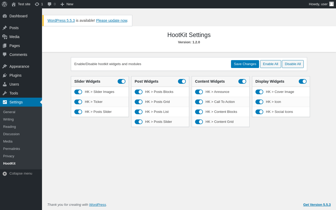 Does HootKit work with WordPress 5.5.3 and PHP 7.4.8? A smoke test was performed on .