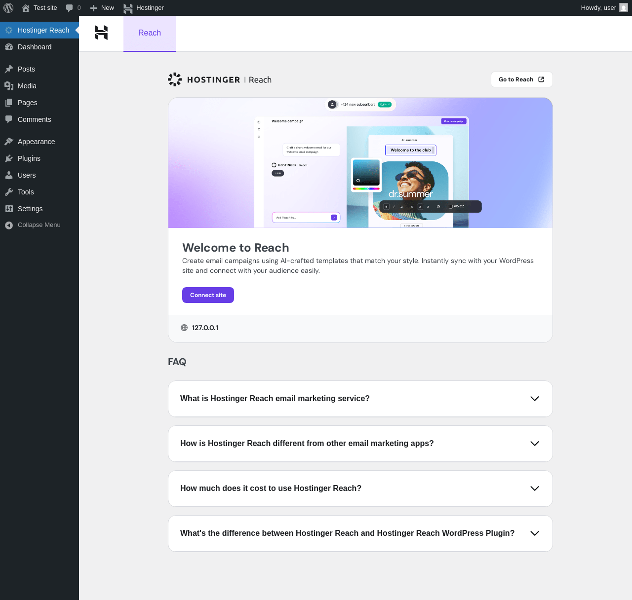 | URL | /wp-admin/admin.php?page=hostinger-reach#/home |