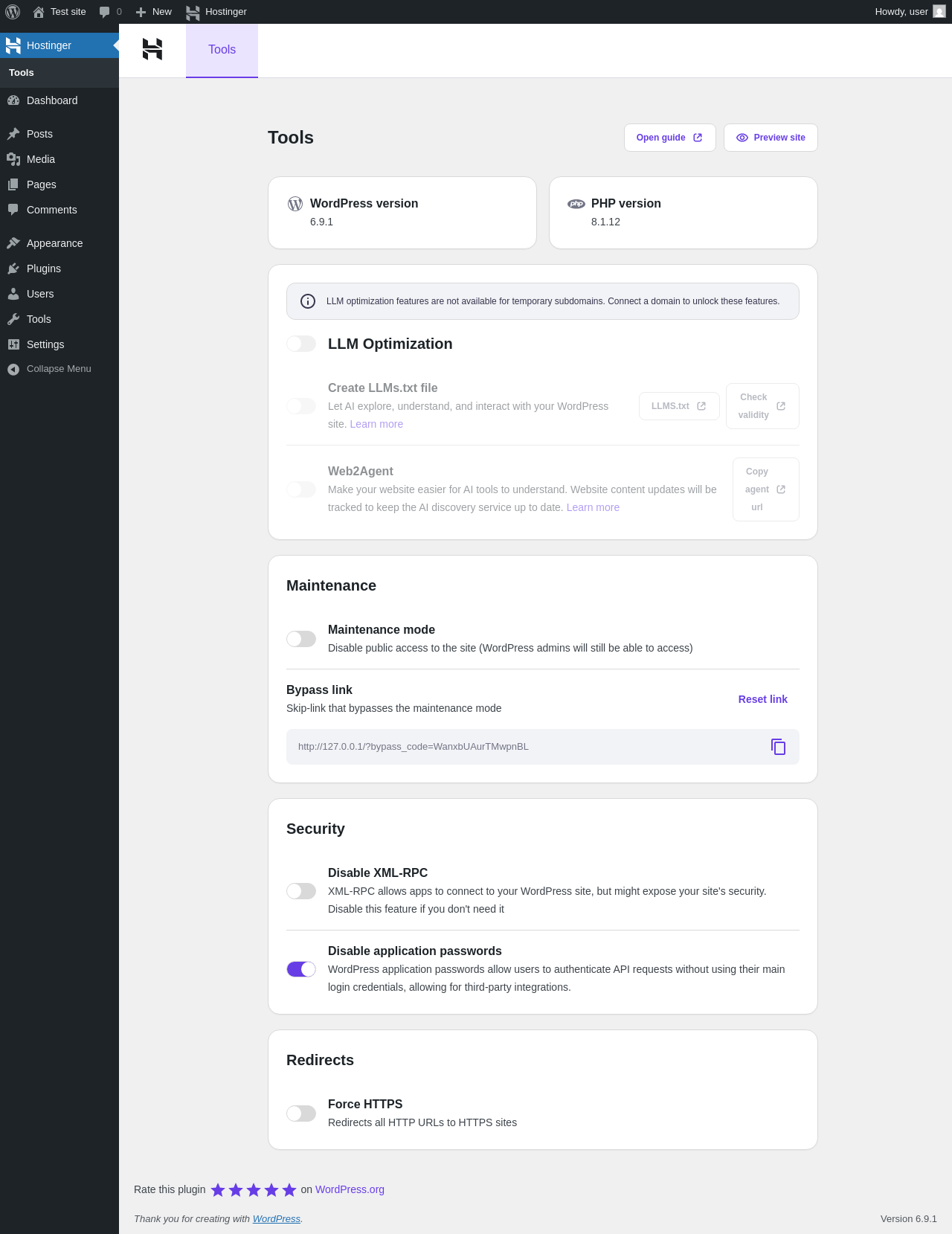 | URL | /wp-admin/admin.php?page=hostinger-tools |