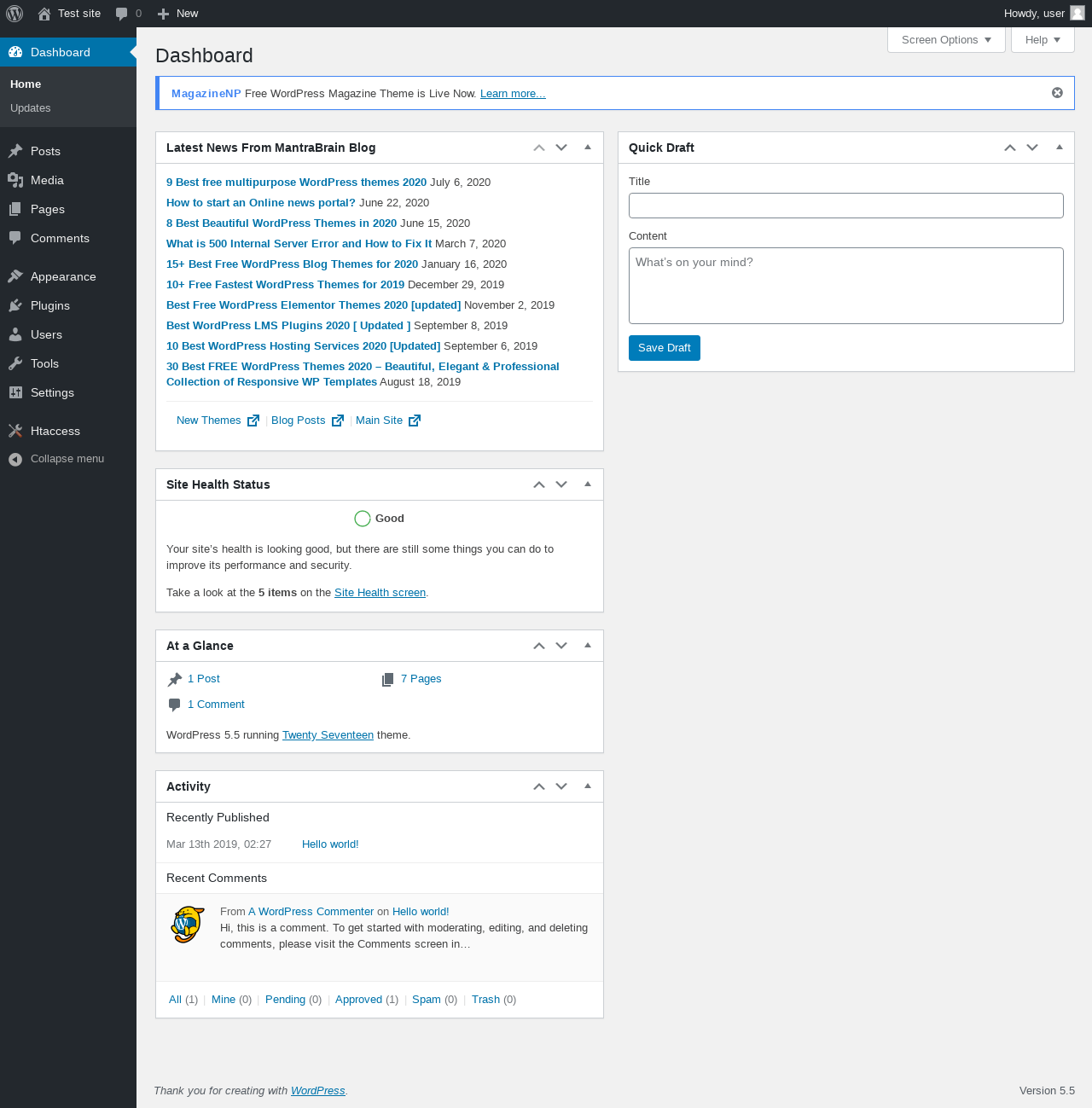 Does Htaccess File Editor work with WordPress 5.5 and PHP 7.2.16? A smoke test was performed on .