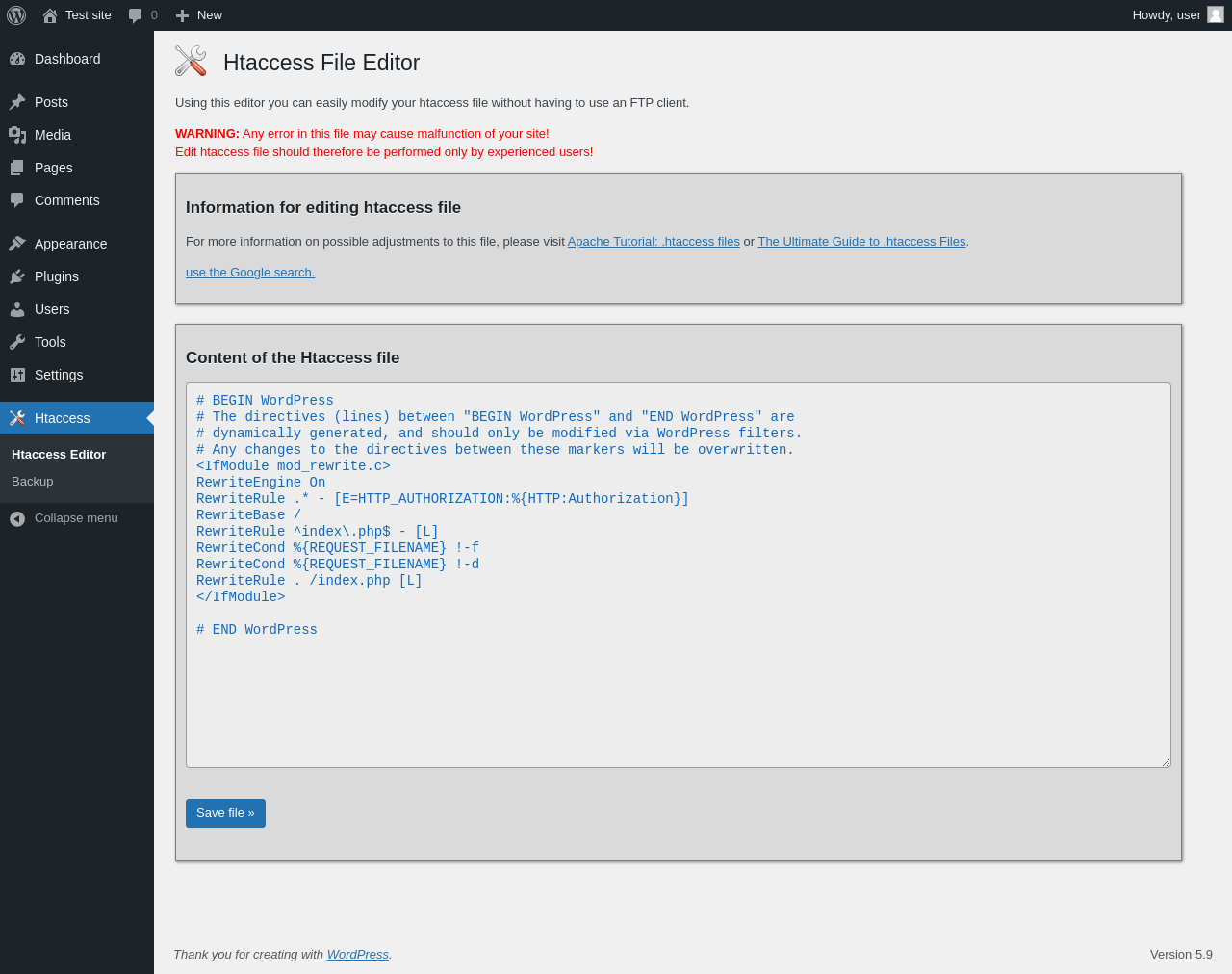 | URL | /wp-admin/admin.php?page=htaccess-file-editor |