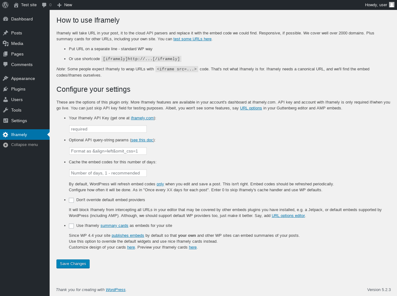 Does Iframely work with WordPress 5.2.3 and PHP 7.2.16? A smoke test was performed on .