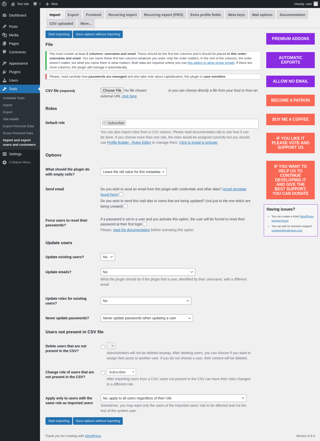 Does "Import and export users and customers" work with WordPress 6.9.4 and PHP 8.1.12? A smoke test was performed on .