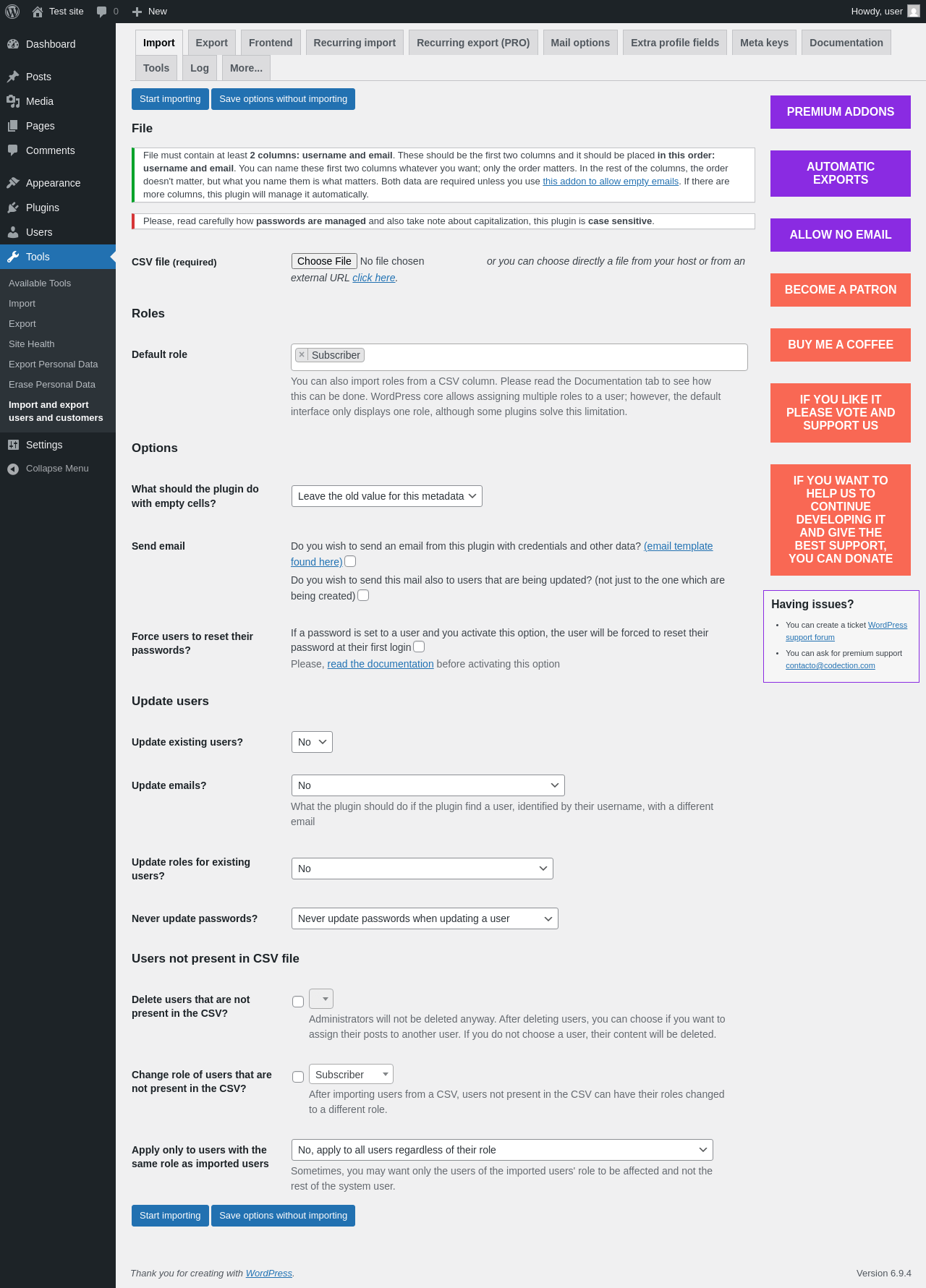 Does "Import and export users and customers" work with WordPress 6.9.4 and PHP 8.1.12? A smoke test was performed on .