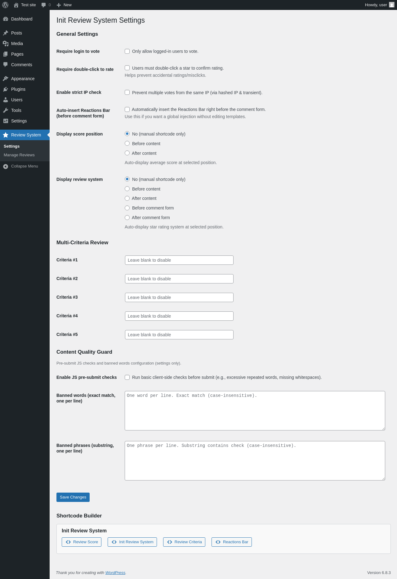Does Init Review System work with WordPress 6.8.3 and PHP 8.1.12? A smoke test was performed on .