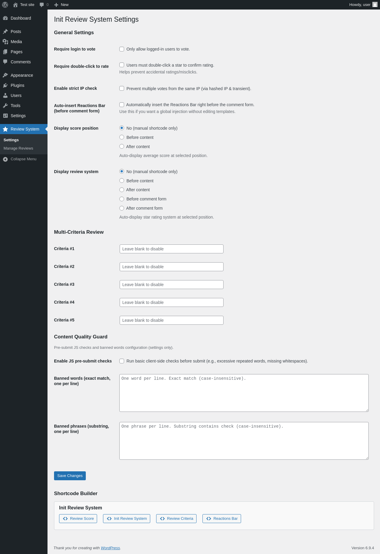 Does Init Review System work with WordPress 6.9.4 and PHP 8.1.12? A smoke test was performed on .
