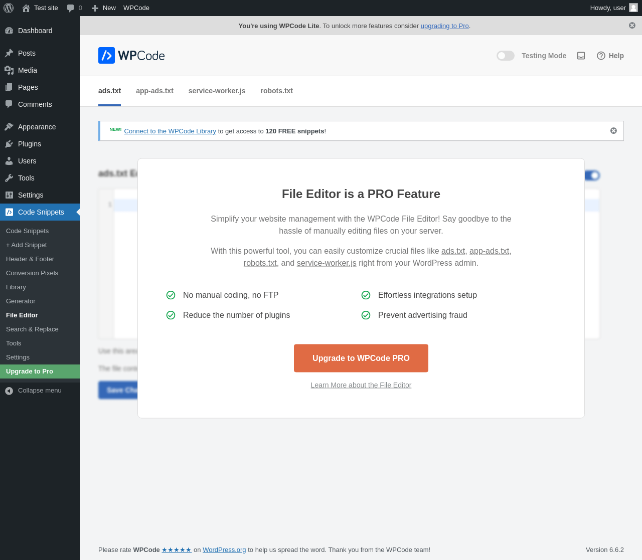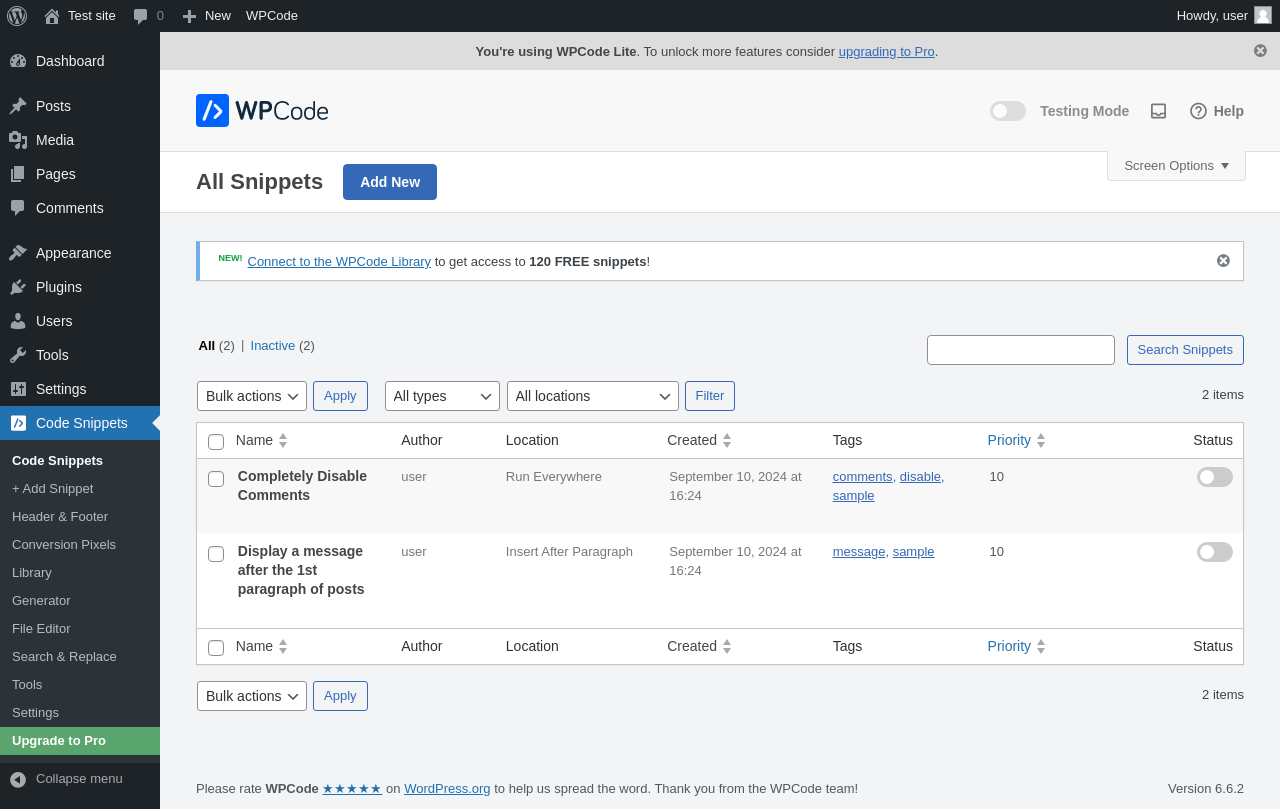 | URL | /wp-admin/admin.php?page=wpcode-library |