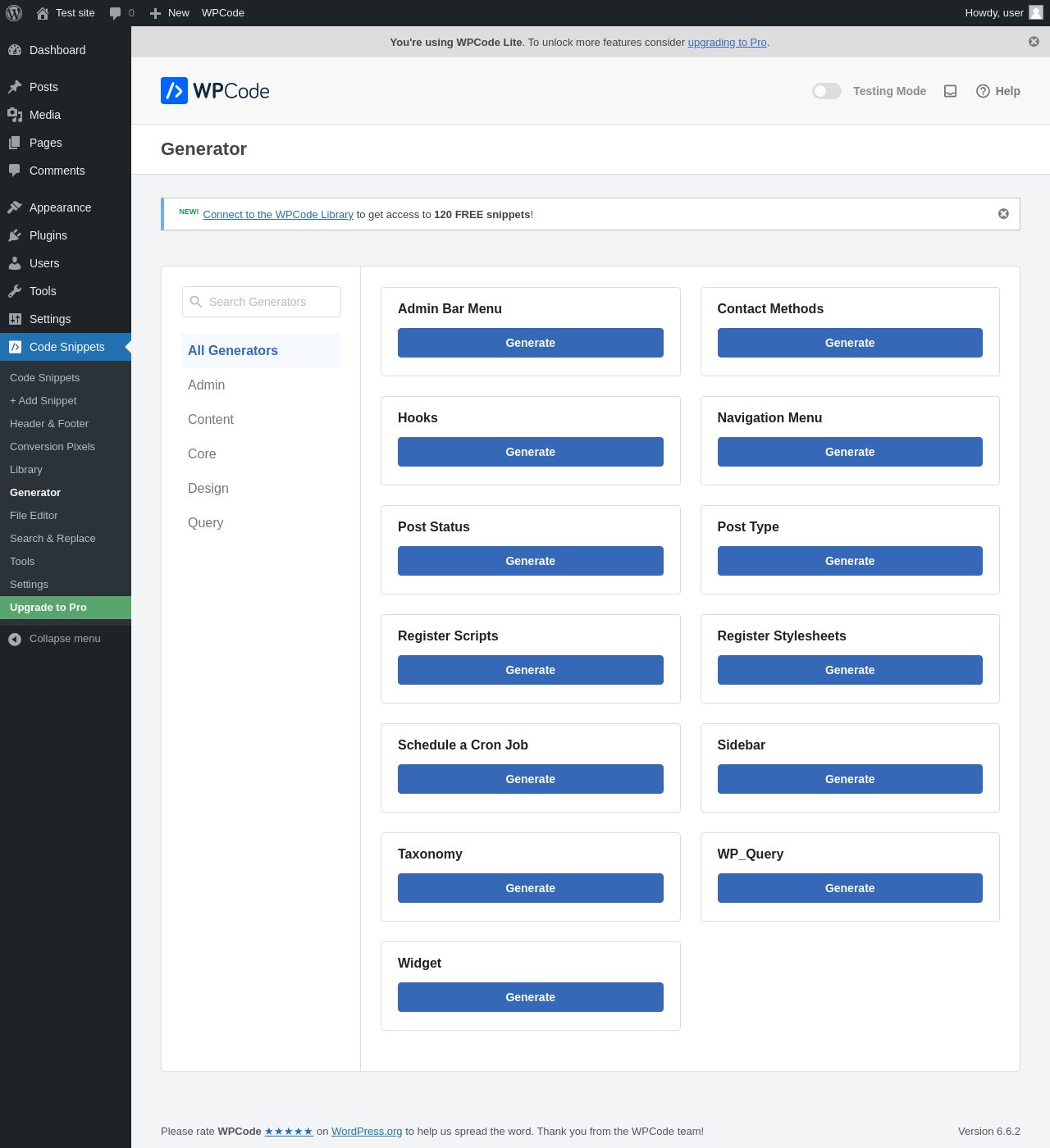 | URL | /wp-admin/admin.php?page=wpcode-generator |