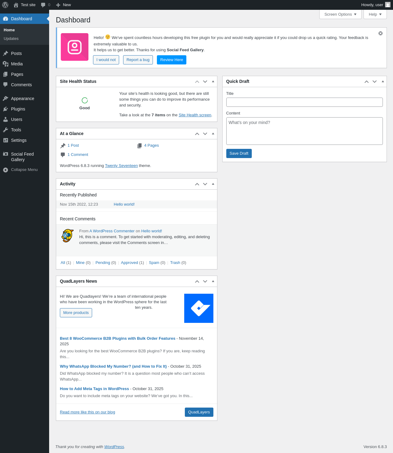 Does Social Feed Gallery work with WordPress 6.8.3 and PHP 8.1.12? A smoke test was performed on .