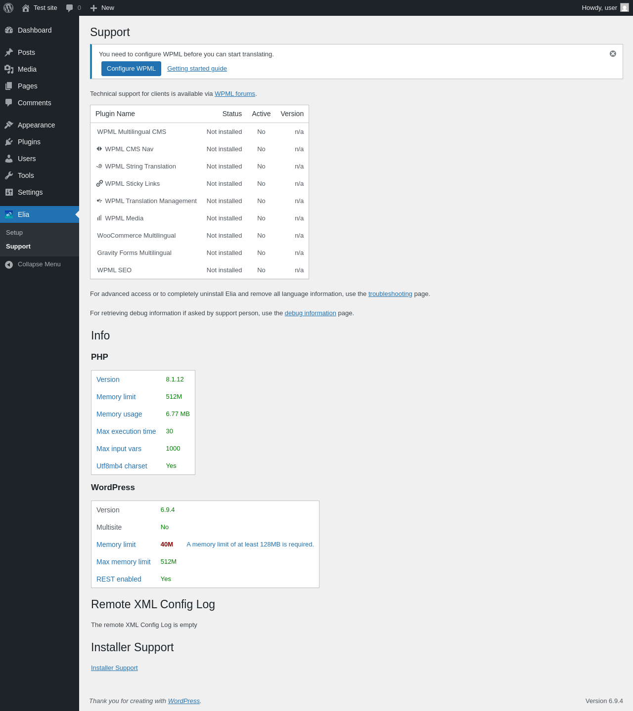 Does elia work with WordPress 6.9.4 and PHP 8.1.12? A smoke test was performed on .