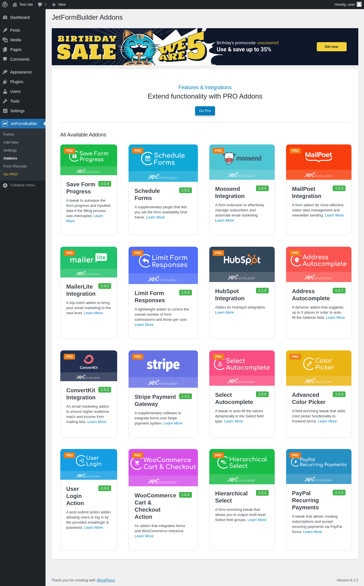 Does JetFormBuilder work with WordPress 6.2.2 and PHP 8.1.12? A smoke test was performed on .