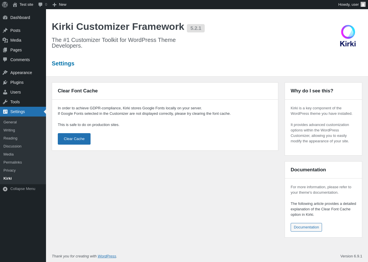 | URL | /wp-admin/options-general.php?page=kirki_settings |