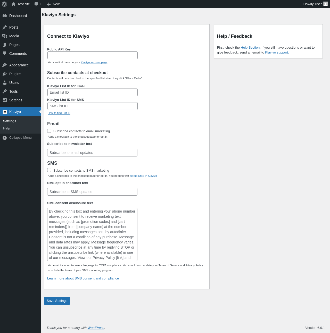 | URL | /wp-admin/admin.php?page=klaviyo_settings |