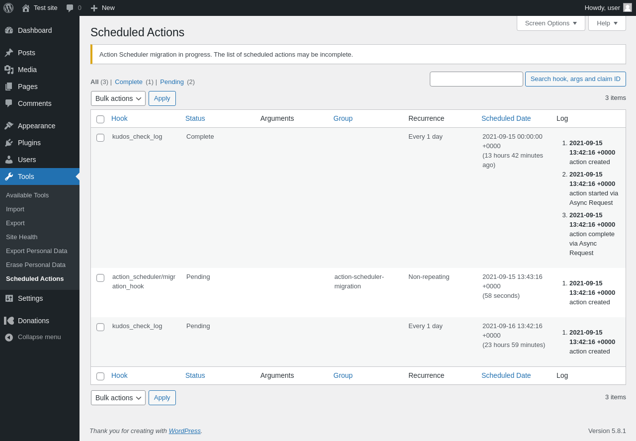 Does Kudos Donations work with WordPress 5.8.1 and PHP 7.4.8? A smoke test was performed on .