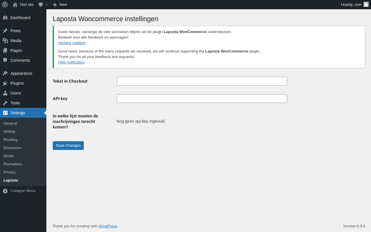 | URL | /wp-admin/options-general.php?page=laposta_woocommerce_options |