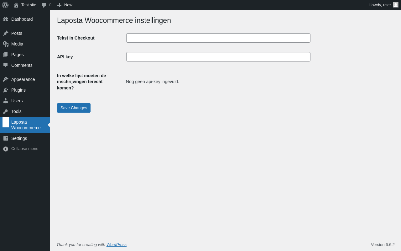 | URL | /wp-admin/admin.php?page=laposta_woocommerce_options |