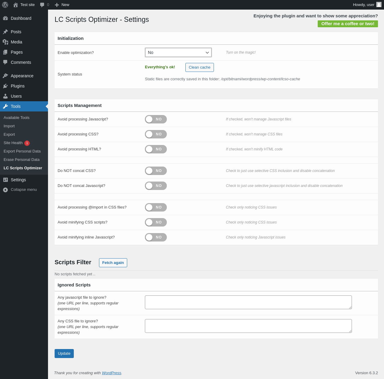 Does "LC Scripts Optimizer - by LCweb" work with WordPress 6.3.2 and PHP 8.1.12? A smoke test was performed on .