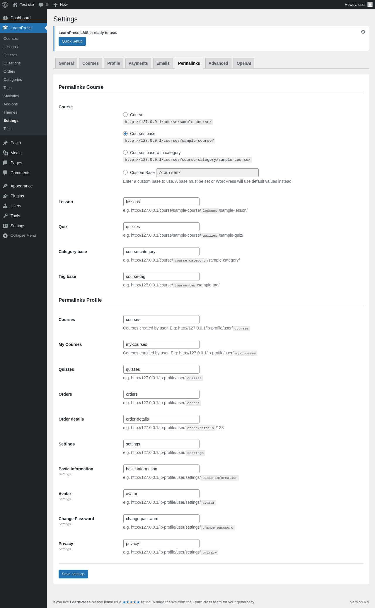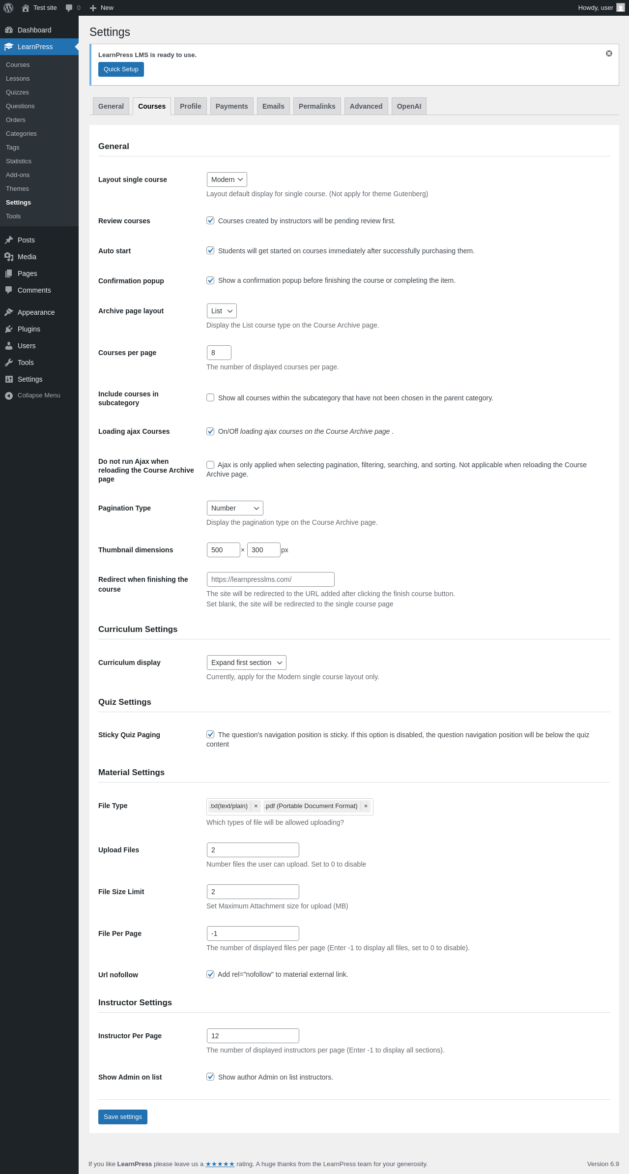 LearnPress → Settings