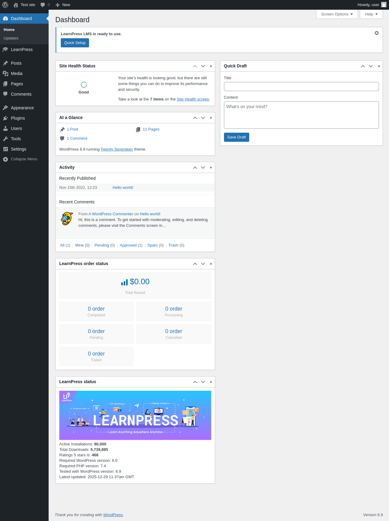 Does LearnPress work with WordPress 6.9 and PHP 8.1.12? A smoke test was performed on 2025-12-29 11:44:18 UTC .