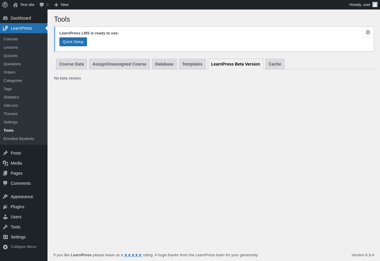 Does LearnPress work with WordPress 6.9.4 and PHP 8.1.12? A smoke test was performed on 2026-03-30 10:32:23 UTC .