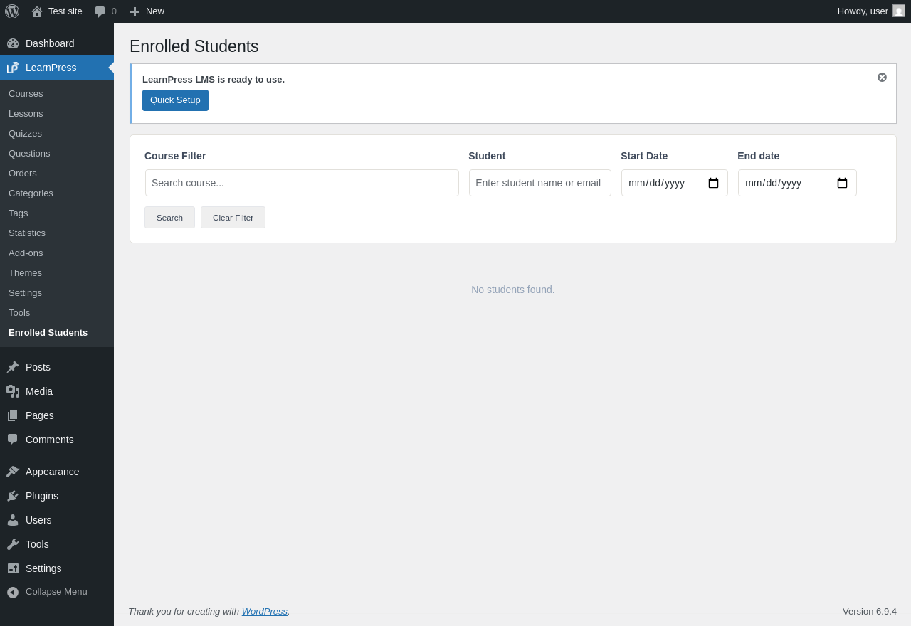 Does LearnPress work with WordPress 6.9.4 and PHP 8.1.12? A smoke test was performed on 2026-04-11 02:19:57 UTC .