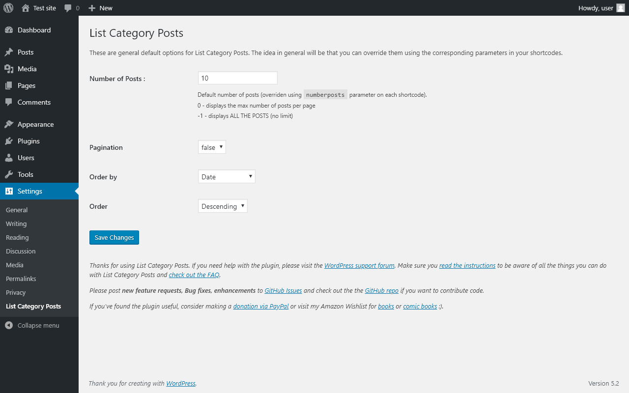 | URL | /wp-admin/options-general.php?page=list-category-posts |