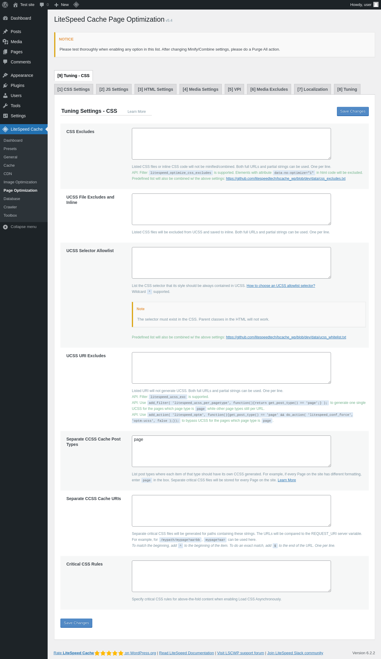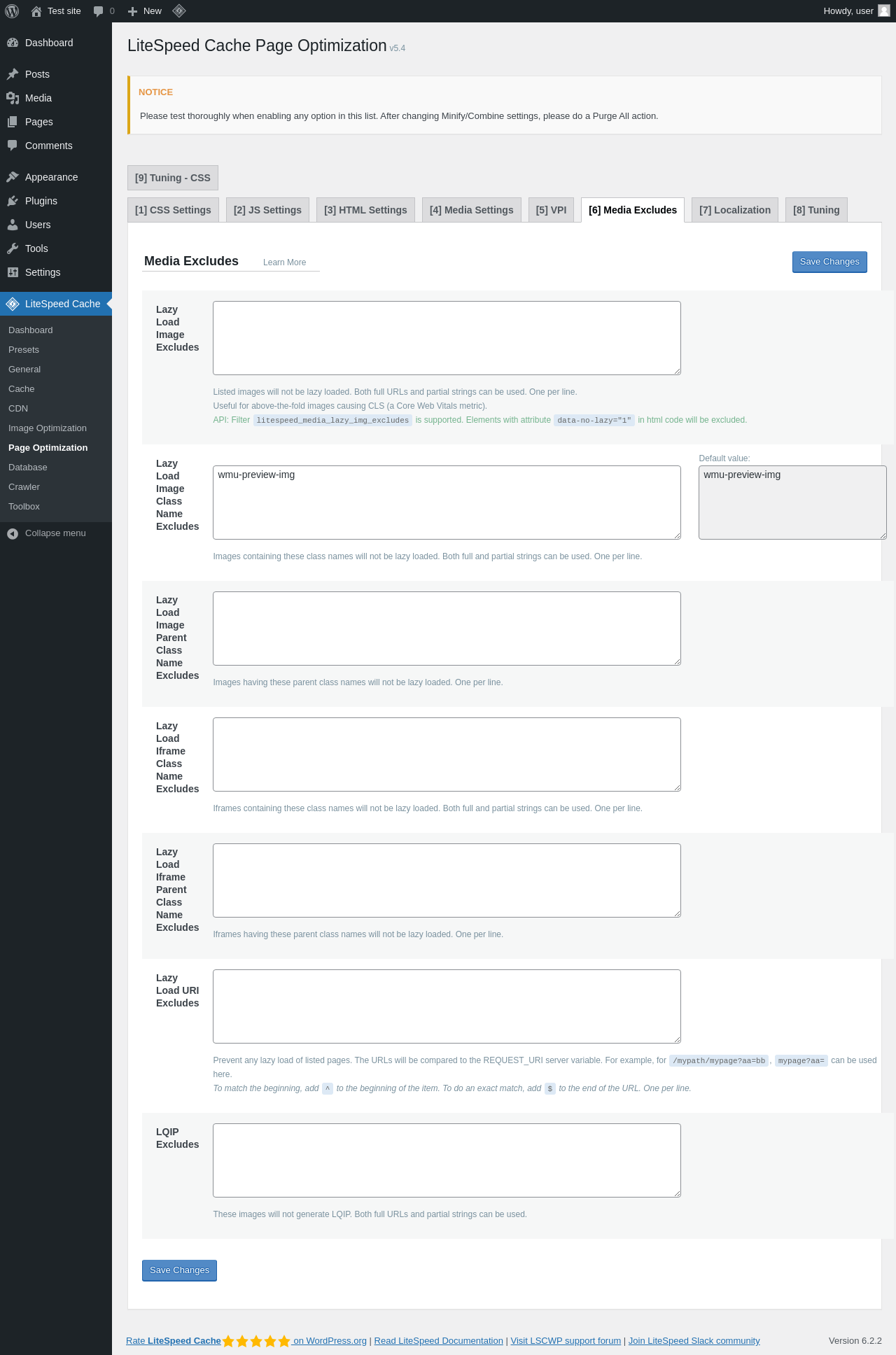 | URL | /wp-admin/admin.php?page=litespeed-page_optm |