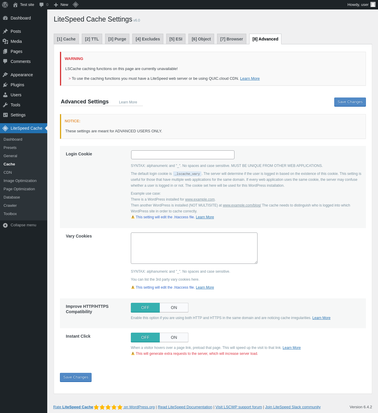 | URL | /wp-admin/admin.php?page=litespeed |
